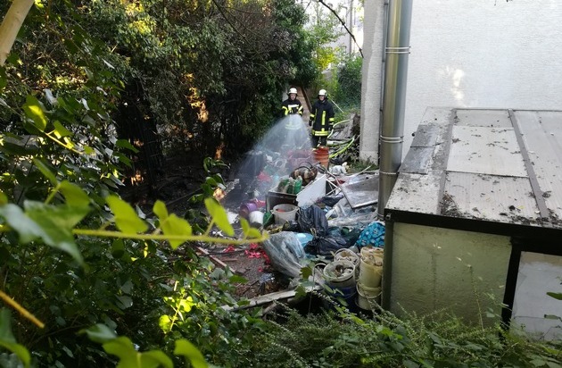 FW Menden: Brennender Unrat an einem Gebäude