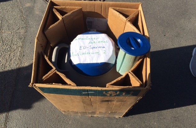 Die alarmierte Feuerwehr konnte das Rätsel schnell lösen. Bei dem Gegenstand auf der Fahrbahn handelte es sich um eine defekte Gasflasche, sondern um einen stickstoff-gekühlten Spezial-Transport-Behälter für Bullen-Sperma. Ermittlungen ergaben, dass der Auslieferungs-Fahrer einer Besamungsgenossenschaft eine Tür seines Transportfahrzeugs nicht richtig geschlossen hatte. Daraufhin war der Behälter dann während der Fahrt aus dem Auto gekullert.