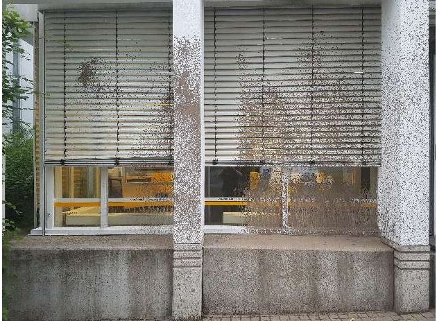 GÖTTINGEN (jk) - Im Düstere-Eichen-Weg ist in der Nacht zu Freitag (23.06.17) die Fassade einer Bankfiliale von Unbekannten mit einer unbekannten bräunlichen Substanz großflächig verunreinigt worden. Betroffen war die Fläche rund um den Eingangsbereich.