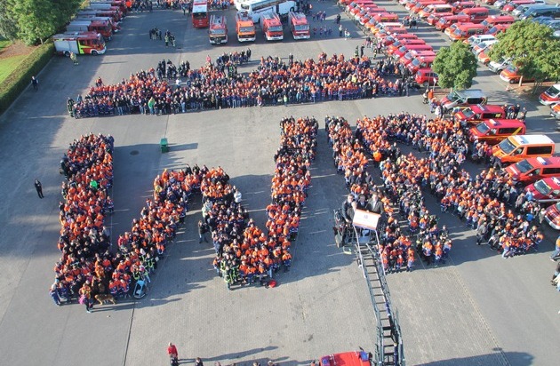 Vor der beeindruckenden Kulisse von 4500 Jugendfeuerwehrangehörigen eröffnete Innenminister Stefan Studt am Samstag (26.9.) den 10. Jugendfeuerwehraktionstag im HANSA-Park. Der Minister musste an diesem Tag besonders schwindelfrei sein, denn er begrüßte die Kids aus luftiger Höhe aus dem Korb der nigelnagelneuen Drehleiter der FF Timmendorfer Strand. Die Kulisse war umso beeindruckender, da die Kids überdimensional den Schriftzug "WIR" als Zeichen gegen Fremdenhass, Ausgrenzung und für Solidarität formten