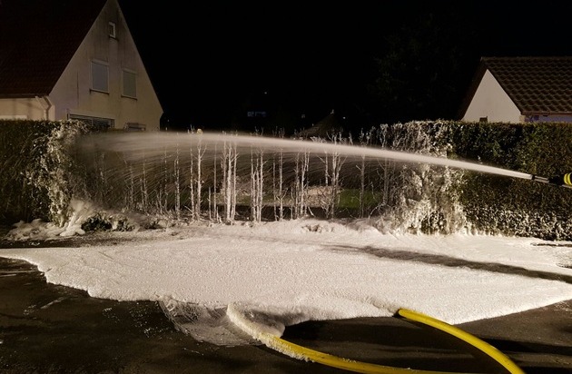 Donnerstag, 05. Januar 2017, 20:22 Uhr, Friedrich-Wilhelm-Weber Straße. Aus ungeklärter Ursache geriet eine Hecke in der Friedrich - Wilhelm - Weber Straße in Brand. Die Leitstelle der Feuerwehr alarmierte daraufhin den Löschzug Lügde mit dem Einsatzstichwort Feuer 2. Die Einsatzkräfte bauten eine Wasserversorgung vom Löschfahrzeug auf und löschten die auf ca. 12m brennende Hecke mit zwei C - Rohren ab. Anschließend wurde der Bereich eingeschäumt um ein erneutes aufflammen zu verhindern. Zum Abschluss des Einsatzes wurde noch die Straße mit Salz gestreut, aufgrund der eisigen Temperaturen hatte das Löschwasser die Straße in eine Eisfläche verwandelt.