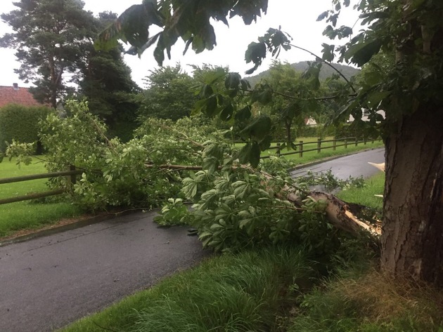FW Lügde: Technische Hilfe: Baum auf Fahrbahn