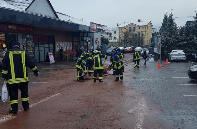 Samsstag, 09.12.2017, Kreuzstraße. Der Löschzug Lügde wurde durch die Kreisleitstelle der Feuerwehr zu einem Ölschaden in die Kreuzstraße alarmiert. Nach der Erkundung der Einsatzstelle stellte sich heraus, das ein Motorisiertes Fahrzeug Betriebsstoffe verloren hat. Durch die Witterungsverhältnisse erstreckte sich die Ölspur auf eine Länge von 100 Metern und einer Breite von 2 Metern. Zusätzlich war ein Parkplatz eines anliegenden Einkaufmarktes betroffen. Die Einsatzkräfte sicherten die Einsatzstelle gegen den fließenden Verkehr ab und streuten die Ölspur mit speziellem Bindemittel ab. Im Anschluss wurde das Bindemittel wieder aufgenommen und fachgerecht entsorgt. Einsatzende für den Löschzug Lügde war nach gut einer Stunde.