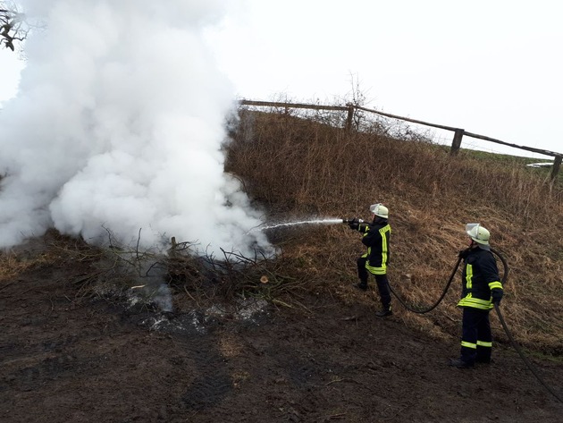 Samstag, 17. Februar 2018, 13:01 Uhr, Köterbergstraße. Die Feuerwehr Niese wurde durch die Kreisleitstelle der Feuerwehr mit dem Einsatzstichwort "Feuer 1 / brennt Holzstapel nahe Hecke" alarmiert. An der Einsatzstelle stellte sich heraus, dass Unrat an einer Böschung brannte. Da die Einsatzstelle an der Kreisgrenze nach Höxter lag und hier die Feuerwehr Fürstenau ebenfalls alarmiert wurde, konnte das Feuer in Zusammenarbeit schnell mittels Schnellangriff gelöscht werden. Weitere Maßnahmen waren seitens der Feuerwehr nicht notwendig.