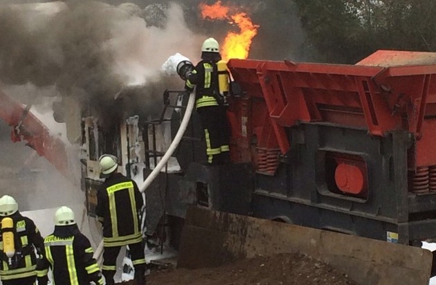Feuerwehr Kalkar: Brand einer Steinbrechermaschine