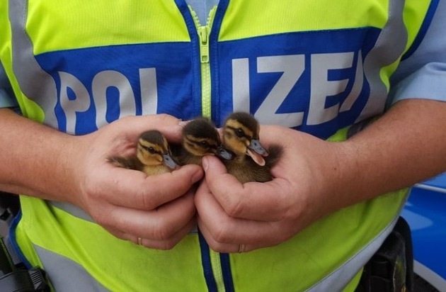 Heute Morgen alarmierten Autofahrer, gegen 9.45 Uhr, die Autobahnpolizei Hilden über ein nicht alltägliches Geschehen auf der A 46. Eine Entenmutter und ihre drei Küken watschelten zwischen dem Tunnel Wersten und dem Universitätstunnel langsam über die Fahrbahnen. Bis zum Eintreffen der Beamten hatten offenbar alle Verkehrsteilnehmer die Familie rechtzeitig gesehen. Die Polizisten stoppten kurz den Verkehr, fingen zusammen mit einer Pkw-Fahrerin die Vier ein und brachten sie in den Streifenwagen - sehr zur Begeisterung der anderen Fahrer. Der nicht ganz ungefährliche Ausflug endete schließlich im Volksgarten in Düsseldorf, wo die Beamten das Quartett wieder in die Freiheit entließ.