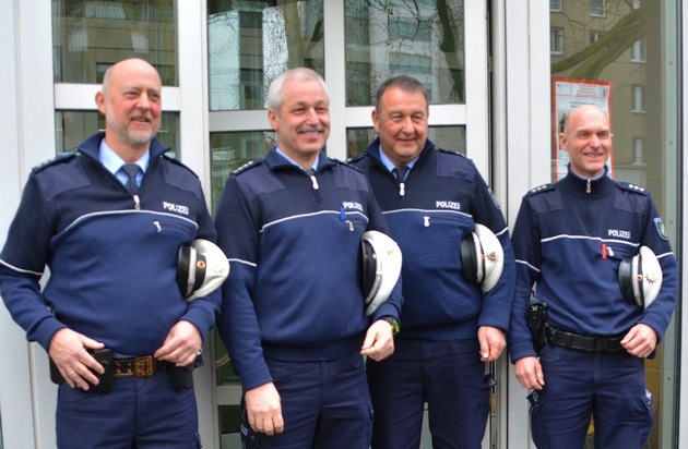Die Fotos zeigen Polizeihauptkommissar Jörg Fornacon alleine und im Kreis seiner Kollegen.