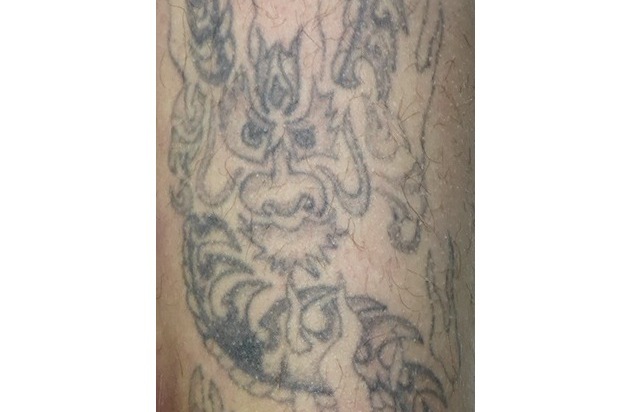 Linker Oberschenkel: Drachenkopf und Drachenschwanz