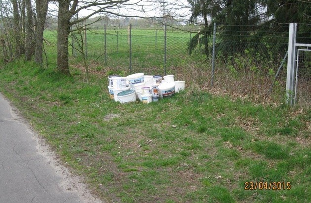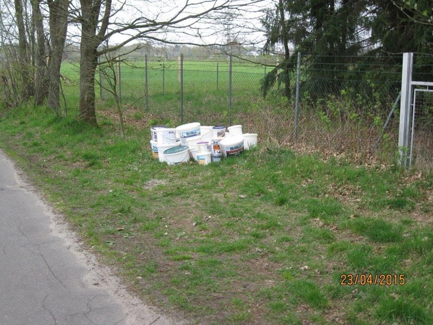 Wieder ist es in Quickborn zu einer unerlaubten Abfallbeseitigung von diesmal rund drei Dutzend Farbgebinden unterschiedlicher Art gekommen.