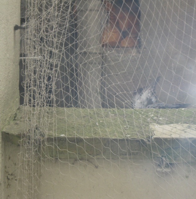 Mit dem Schutz vor Tauben beschäftigen sich auch Fachfirmen. Sogenannte Nagelbretter auf Fensterbänken sind üblich und häufig gewähltes Mittel. Netze könnten grundsätzlich auch helfen. Dafür müssten diese aber sehr engmaschig und das Garn der Netze fest sein, so dass ein Verfangen von Vögeln, auch Kleineren, ausgeschlossen ist (Obstbäume werden ebenfalls mit engmaschigem Netz geschützt). Zudem müssen sie durch eine starke Färbung (z.B. grün oder warnfarben) für die Vögel erkennbar sein. Es dürfen keine Spalten entstehen, durch die die Tiere hindurch schlüpfen können. In diesem Fall hatte der Verantwortliche ein weißes, nahezu durchsichtiges, großmaschiges, sehr feines Netz benutzt und nicht dafür gesorgt, dass keine Spalten entstehen. Er wird aufgefordert, das Netz zu entfernen, bzw. es richtig zu machen.