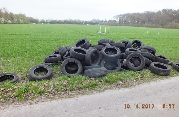 Unbekannte luden auf der dortigen Zuwegung zum Esinger Wohld einen Haufen Altreifen ab und entfernten sich anschließend in unbekannte Richtung.