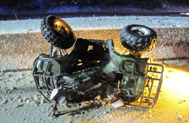 Der Quad-Fahrer kam von der BAB 661 aus Richtung Oberursel und fuhr am Bad Homburger Kreuz auf die BAB 5 in Richtung Süden. Auf der Beschleunigungsspur verlor er nach derzeitigem Erkenntnisstand aufgrund nicht angepasster Geschwindigkeit bei Schneefall und Straßenglätte die Kontrolle über sein Gefährt, geriet ins Schleudern und kippte um.
