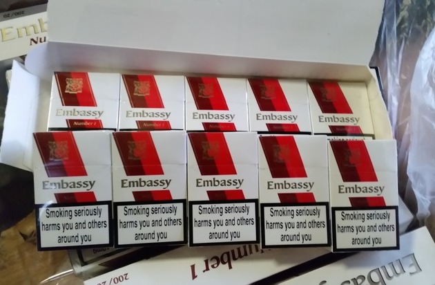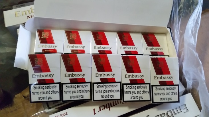 Bereits am 6. Januar 2016 konnten Zollbeamte aus Hamburg aufgrund eines Hinweises 10.570.000 Stück unversteuerte und unverzollte Zigaretten der Marke "EMBASSY NUMBER 1" in einem Seecontainer sicherstellen. In dem aus Hanoi (Vietnam) kommenden Container sollten sich laut Ladepapieren Sonnenbrillen befinden.