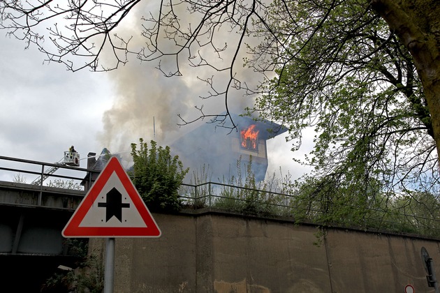 Das Reiterstellwerk des ehemaligen Güterbahnhofes am Viehofer Platz (Stadtmitte) ist heute Mittag in Flammen aufgegangen. Passanten hatten kurz vor 13.00 Uhr die Feuerwehr alarmiert. Schon nach wenigen Minuten bestätigten die ersten Einsatzkräfte die Brandmeldung, die Rauchsäule war weithin sichtbar. Sie forderten einen zweiten Löschzug nach. Das an der ehemaligen Rheinbahn gelegene, rechtwinklige Gebäude mit einer Schenkellänge von etwa 18 Metern wurde durch die Flammen erheblich beschädigt, der Dachstuhl ist größtenteils zerstört. Wegen der erhöhten Lage des Objektes auf dem Bahndamm kamen zwei Drehleitern mit Wasserwerfern zum Einsatz. Nachdem das Feuer unter Kontrolle war, konnten Atemschutztrupps in das Gebäude eindringen und nach Personen absuchen, sie wurden glücklicherweise nicht fündig. Derzeit (15.00 Uhr) finden letzte Nachlöscharbeiten statt. Die Brandursache steht noch nicht fest, die Kriminalpolizei wird ermitteln. Verletzt wurde niemand. (MF)