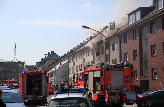 Bei einem Wohnungsbrand in Essen-Borbeck sind am frühen Nachmittag vier Menschen verletzt worden. Zwei Frauen (im Alter von 45 und 34 Jahren) und ihre beiden Kinder (männlich, 17 Jahre und weiblich, 12 Jahre) wurden nach notärztlicher Kontrolle mit dem Verdacht auf Rauchgasvergiftungen in umliegende Krankenhäuser gebracht. Das Feuer war im zweiten Obergeschoss eines dreieinhalbgeschossigen Wohn- und Geschäftshauses entstanden. Die 45jährige und ihr 17 Jahre alter Sohn, die sich zum Zeitpunkt des Brandausbruchs beide in der betroffenen Wohnung aufhielten, brachten sich nach kurzem, erfolglosen Löschversuch in Sicherheit. Die andere Frau verließ mit ihrer Tochter das Haus durch den Treppenraum, die zwei kamen aus dem Obergeschoss. Die Besatzung des ersteintreffenden Rettungswagens trug eine gehbehinderte ältere Dame aus dem ersten Stock ins Freie, sie blieb unverletzt. Das Feuer löschten zwei Trupps, ein weiterer Trupp kontrollierte den Treppenraum und alle übrigen Wohnungen. Nach Belüftung des Gebäudes und abschließenden Schadstoffmessungen endete der Einsatz nach etwa eineinhalb Stunden. Die Bocholder Straße war zwischen Matthäuskirchstraße und Ketteler Straße voll gesperrt, die Polizei leitete den Verkehr um. Die Brandursache wird durch die Kriminalpolizei ermittelt. Gegen 16.30 Uhr erfolgt eine abschließende Brandnachschau.(MF)