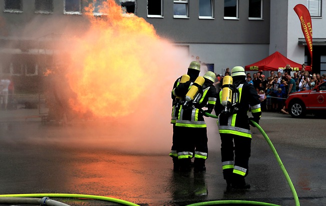 Unter dem Motto: "Gemeinsam feiern, gemeinsam arbeiten" begleiten die Hilfsorganisationen, das Technische Hilfswerk und die Deutsche Lebens-Rettungs-Gesellschaft die Veranstaltung. Alle sind seit vielen Jahren gern gesehene Partner, die das bunte Programm bereichern. Für die Kleinen gibt es viele Attraktionen. Die Feuerwehr-Hüpfburg, ein Kinderschminkstand, ein Glücksrad und ein Fotostudio lassen keine Langeweile aufkommen. Die Feuerwehr-Puppenbühne sorgt für spannende Unterhaltung. Aus der Brandsimulationsanlage sendet der Angriffstrupp Livebilder in den großen Hörsaal. Für die Erwachsenen gibt es Übungen, Vorführungen und Informationen rund um die Feuerwehr. Der direkt neben unserem Gelände befindliche Hochbunker kann bei Bedarf besichtigt werden. Es gibt eine Menge, auch historische, Infos zur Bunkeranlage. Interessenten sollten allerdings mindestens festes Schuhwerk und eine Taschenlampe mitbringen. Diese Utensilien sind für einen kleinen Einblick in die Leitstelle, das Herz der Feuerwehr, übrigens nicht nötig. Die kostenlose Notfall-, Informations- und Nachrichten-App (NINA) des Bundesamtes für Bevölkerungsschutz und Katastrophenhilfe (BBK) ist für verschiedene Smartphone-Betriebssysteme verfügbar. Wer die Applikation bereits installiert hat, empfängt am Wochenende Testmeldungen aus der Essener Feuerwehr-Leitstelle.