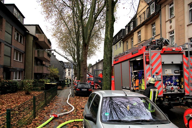 Im ersten Obergeschoss eines viereinalbgeschossigen Mehrfamilienhauses in Essen-Steele ist heute Morgen (17.11.2016) ein Feuer ausgebrochen. Aus einem von der Straßenseite abgewandten Fenster quoll dichter Rauch, die Fensterscheibe war durch Hitzeeinwirkung bereits geborsten. Mit Atemschutzgeräten geschützt, ging ein Trupp zur Brandbekämpfung vor, weitere Trupps kontrollierten die übrigen dreizehn Wohneinheiten auf eingedrungenen Brandrauch. Eine Person brachten die Retter über den Treppenraum, eine weitere mittels Drehleiter in Sicherheit. Sie blieben unverletzt. Die Brandwohnung ist nicht mehr bewohnbar, die Kriminalpolizei hat die Brandursachenermittlung begonnen. Die Straße Lohmühlental war im Bereich der Einsatzstelle vorübergehend vollständig gesperrt. (MF(