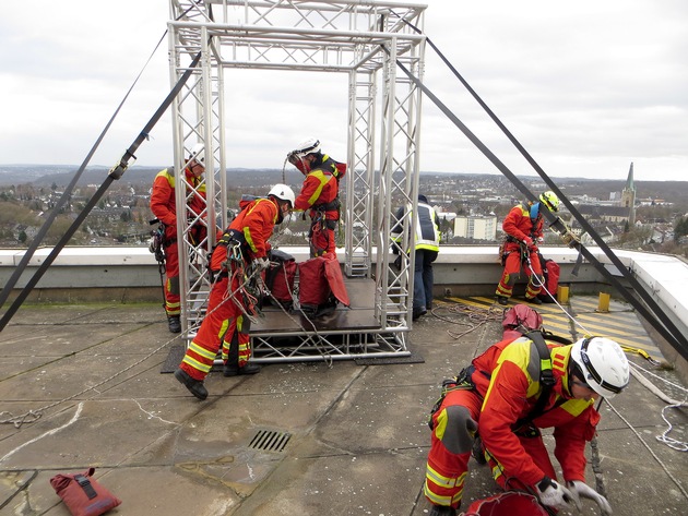 Ein etwa dreizehn Meter langes und fünf Meter breites Werbeplakat, welches an der südlichen Fassade des Ruhrturms befestigt war, ist am Nachmittag dem Sturmtief "Wilfried" zum Opfer gefallen. Das Plakat schlug lose im Wind wie ein riesiges Segel, nachdem sich Befestigungsseile aus dem gerissenen Material gelöst hatten. Höhenretter der Essener Feuerwehr bargen das beeindruckende Segel, indem sie sich aus rund sechzig Metern Höhe mit ihm abließen. Kuriosum am Rande: Das Plakat warb mit großen Lettern für ein "Houserunning". Das ist ein Event, bei dem Menschen an der Fassade von hohen Gebäuden gesichert abwärts laufen. Die dazu notwendige Plattform war bereits installiert und erleichterte den Feuerwehrmännern die Arbeit ungemein. Nach rund zweieinhalb Stunden war der spektakuläre Einsatz beendet. (MF)