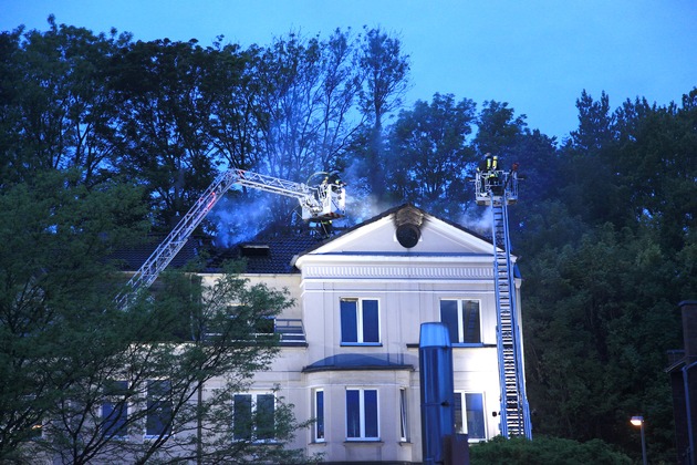 FW-E: Dachstuhlbrand in Mehrfamilienhaus, eine männliche Person schwer verletzt