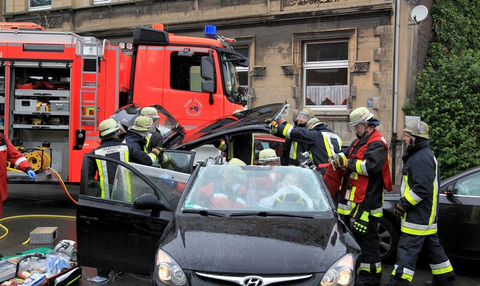 FW-E: Verkehrsunfall mit zwei PKW, eine Person eingeklemmt, eine weitere ebenfalls verletzt