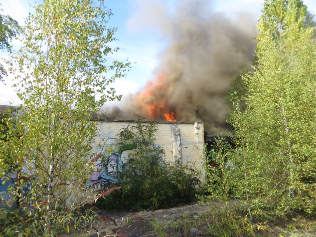 Aus bislang unbekannter Ursache kam es am Sonntagnachmittag gegen 15:30 Uhr zu einem Brand in einem "auf Abbruch" stehenden Gebäude an der Zollstraße. Die massive, bereits aus der Stadtmitte sichtbare Rauchentwicklung wies den Rettungskräften den Weg. Beim Eintreffen der ersten Feuerwehrkräfte stand das eingeschossige Gebäude mit einer Grundfläche von ca. 150m² bereits in Vollbrand. Der Brand wurde mit vier C-Rohren, eins davon über die Drehleiter, bekämpft. Zum Schutz der Einsatzkräfte kamen acht Pressluftatmer sowie mehrere Filtergeräte zum Einsatz. Menschen kamen nicht zu Schaden. Abschließend wurde die Dachhaut über die Drehleiter geöffnet um die letzten Brandnester gezielt mit einem Rohr abzulöschen. Die Zollstraße blieb für die Dauer der Brandbekämpfung in beiden Richtungen voll gesperrt. Die Polizei übernahm die Einsatzstelle um die Brandursache zu ermittelt. (md)