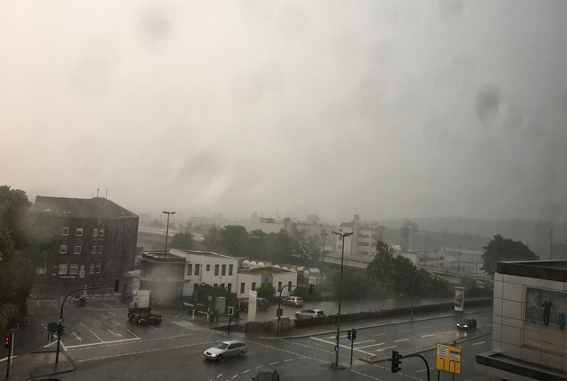 Die vom Deutschen Wetterdienst angekündigte Unwetterlage hat am Abend das Essener Stadtgebiet erreicht. Aus Richtung Osten (über Bochum) langsam über das Stadtgebiet hinwegziehend, gingen sturzbachartige Regengüsse ab. Der Einsatzschwerpunkt lag und liegt wie so häufig im Essener Süden, der Stadtteil Kettwig ist besonders betroffen. Zwischen 19.10 Uhr und 20.00 Uhr galt die höchste Warnstufe "4" mit der Warnung vor "extremem Gewitter". Um 21.15 Uhr, drei Stunden nachdem das erste Einsatzfahrzeug zur Krayer Straße zu einem umgestürzten Baum ausgerückt war, weist die Statistik 116 witterungsbedingte Einsätze aus. Ein Teil ist bereits erledigt, die übrigen Einsatzstellen werden nach und nach von den Kollegen aufgesucht und entsprechend Hilfe geleistet. Manchmal ist das Wasser bereits von selbst wieder abgelaufen. Wie heftig die Regenfälle waren, lässt sich an einem Dutzend hochgedrückter Gullydeckel durch Rückstau in der Kanalisation erkennen. Die Freiwillige Feuerwehr hat wie gewohnt erheblich zur Beseitigung der Schäden beigetragen. Schätzungsweise bis Mitternacht werden die Ehrenamtler noch in der Stadt unterwegs sein. (MF)