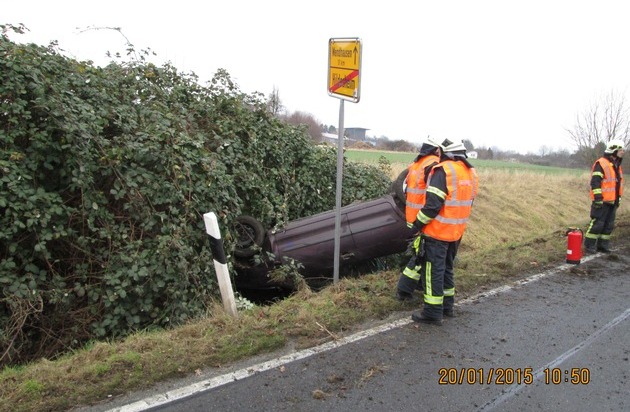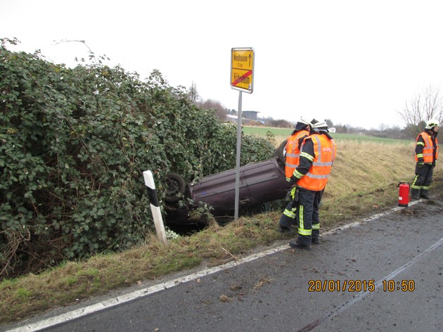 Bei diesem Manöver brach das Fahrzeug geringfügig aus und rutsche an den Fahrbahnrand auf den unbefestigten Untergrund. Bedingt durch den sich anschließenden Graben kippte der VW Polo zur linken Seite um. Das seitliche Rutschen des Fahrzeugs und das sich dadurch aufstauende, durchfeuchtete Erdreich verstärkte den Kippeffekt, so dass das Auto auf dem Dach liegend zum Stillstand kam. Es gibt bislang Hinweise darauf, dass der Schüler etwa mit überhöhter Geschwindigkeit unterwegs war. Die Stoßeinwirkungen auf das Auto waren so gering, dass es zu keiner Auslösung der Airbags gekommen war. Die vier Heranwachsenden konnten das Fahrzeug unbeschadet verlassen, wurden jedoch vorsorglich in ein Hildesheimer Krankenhaus gebracht. Lediglich die Beifahrerin klagte über leichte Schmerzen im Bereich der Stirn. Der Schaden am alleinbeteiligten VW Polo wird auf circa 3000 Euro geschätzt.