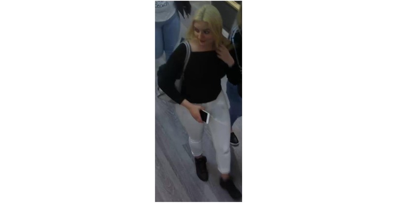 Die Täterin wurde videografiert. Ein Bild ist beigefügt. Hinweise zur Identität der Beschuldigten werden unter Tel.: 05121/939115 entgegen genommen.
