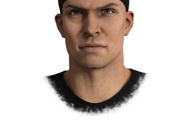 - Haare: verdeckt durch ein schwarzes, geknotetes Kopftuch