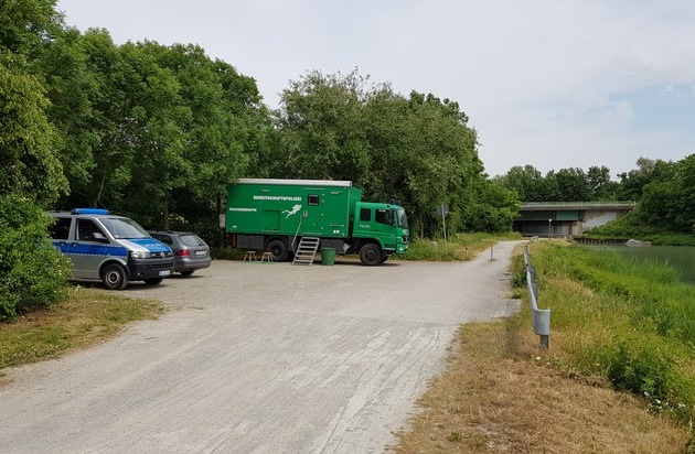 Am 20.05.2018, gegen 22:45 Uhr, erreichte die Polizei in Hildesheim der Zeugenhinweis eines Anglers, welcher kurz zuvor einen VW Transporter beobachtete, der auf der Mittellandkanalbrücke der Bundesstraße 6 in Hildesheim anhielt. Zwei männliche Personen stiegen aus dem Fahrzeug und warfen einen schweren Gegenstand von der Brücke aus in das Gewässer. Dies bewegte den Angler dazu die Polizei zu informieren.