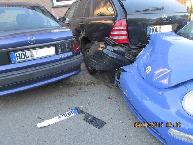 Beim Ausweichen einer Katze geriet am heutigen frühen Morgen eine PKW-Fahrerin auf Abwege und prallte gegen zwei ordnungsgemäß geparkte Fahrzeuge. Dadurch entstand ein Gesamtsachschaden von ca. 6.000,-- EUR. Verletzt wurde niemand. Um 06:45 Uhr befuhr eine 26jährige Fahrzeugführerin mit ihrem VW-Beatle den Hohen Weg in Holzminden in Richtung Von-Langen-Allee. Plötzlich wechselte unmittelbar vor der Beatle-Fahrerin eine Katze von rechts nach links die Fahrbahn. Beim Ausweichen geriet die junge Frau nach rechts von der Fahrspur ab und prallte gegen einen vor einem Wohnhaus ordnungsgemäß geparkten Mercedes, der wiederum gegen die Hauswand und darüber hinaus gegen einen weiteren Opel gedrückt wurde.