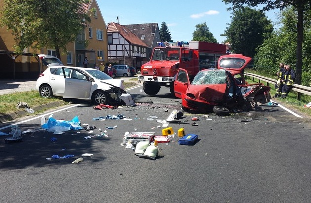 Die Insassen aus dem beteiligten Toyota Auris wurden durch den Frontalzusammenstoß schwer verletzt. Sie werden in einer Hamelner Klinik stationär behandelt.