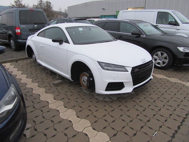 Bislang unbekannte Täter haben von einem nagelneuen Audi TTS alle vier Alu-Räder gestohlen. Der komplette Rädersatz hat einen Wert von über 4.000 Euro. Die Beamten der Polizei Holzminden setzen bei ihren weiteren Ermittlungen auch auf die Hilfe aufmerksamer Zeugen und bitten um Hinweise.