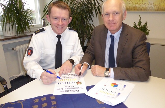 Kriminaldirektor Ralf Leopold, Leiter der Polizeiinspektion Hameln-Pyrmont/Holzminden, und Polizeioberrat Jens Kozik, Leiter des Zentralen Kriminaldienstes, haben heute gemeinsam der Öffentlichkeit und den Medien die Zahlen der "Polizeilichen Kriminalstatistik (PKS)" für 2016 vorgestellt.
