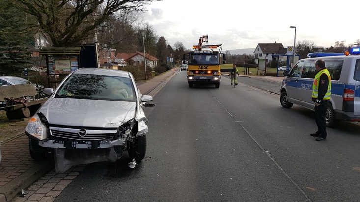 Eine 77-jährige Autofahrerin fuhr vom Parkplatz einer Gaststätte nach links auf die Landesstraße ein. Hierbei kam es zur Kollision mit einem Opel Astra, der die Landesstraße von Hess. Oldendorf in Richtung Rehren befuhr.