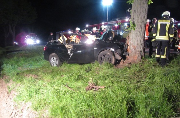 In der Nacht zum 11.05.17, gegen 02:00 Uhr kam ein 21-jähriger Mann aus Stadtoldendorf mit einem Opel außerhalb geschlossener Ortslage beim Durchfahren einer leichten, langgezogenen Linkskurve nach rechts von der Fahrbahn der Bundesstraße ab und prallte gegen einen dort befindlichen Straßenbaum. Durch den Aufprall wurde der junge Mann im total beschädigten Fahrzeug eingeklemmt und nach Bergung ansprechbar, aber mit schweren Verletzungen einer intensivmedizinischen Betreuung dem Hamelner Klinikum zugeführt. Das zerstörte Fahrzeug wurde mittels Abschleppunternehmen geborgen und ausgelaufene Betriebsmittel beseitigt.