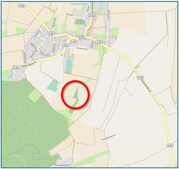 Daher fragen die Ermittler, wer im genannten Zeitraum entsprechende Beobachtungen gemacht hatte. Das betroffene Biotop befindet sich zwischen Hemeringen und Pessinghausen westlich der Kreisstraße 28 auf Höhe des Sportplatzes. Hinweise bitte an die Polizeistation Hess. Oldendorf unter Tel. 05152/947490.