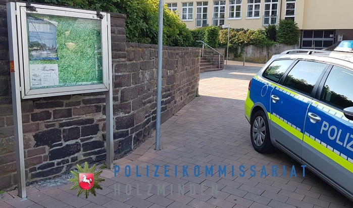 Im der Nacht zum Sonntag haben bisher unbekannte Täter erneut eine Sachbeschädigung am Weserkai begangen. Nachdem in den letzten Wochen bereits zwei der dort aufgestellten Kunstfiguren beschädigt worden sind, wurde jetzt in unmittelbarer Nähe ein Schaukasten beschädigt. Die Glasscheibe des Schaukasten wurde völlig zerstört. Die Polizei Holzminden hat eine Anzeige gegen Unbekannt wegen Sachbeschädigung aufgenommen und Blutspuren gesichert. Offensichtlich im Zusammenhang mit dieser Tat haben bisher Unbekannte auch den am Weserkai vorgehaltenen Rettungsring mit Wurfleine aus seiner Halterung genommen und missbräuchlich benutzt. Der Rettungsring wurde nicht beschädigt und konnte wieder ordnungsgemäß in der Halterung befestigt werden. Allerdings weisen die eingesetzten Polizeibeamten in diesem Zusammenhang ausdrücklich daraufhin, dass es sich hierbei um ein Rettungsmittel zur Menschenrettung handelt! Polizeikommissar Philipp Krekeler: "Jede Beschädigung kann dazu führen, dass dieser Rettungsring im Notfall nicht einsatzbereit ist und Menschenleben gefährden." Nachdem die Beschädigungen der Kunstfiguren aufgrund von Hinweisen aus der Bevölkerung aufgeklärt werden konnten, bittet die Polizei auch zu der aktuellen Sachbeschädigung um Hinweise. Wer hat in der Nacht auffällige Beobachtungen gemacht oder kann Angaben zur Aufklärung der Tat machen? Hinweise nimmt die Polizei Holzminden unter der Telefonnummer 05531/958-0 entgegen.