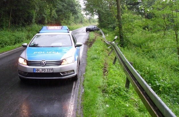 Der Mann befuhr die K 16 von Voremberg in Richtung Bisperode. Ausgangs einer Rechtskurve geriet der Wagen auf regennasser Fahrbahn ins Schleudern und kam nach rechts von der Fahrbahn ab. Der BMW wurde von der Schutzplanke vor der abfallenden Böschung abgehalten, so dass der Pkw auf der Fahrbahn blieb. Jedoch wurde die Schutzplanke auf ca. 50 Meter Länge um- und niedergedrückt. Der BMW wurde ebenfalls stark beschädigt. Der Sachschaden wird auf mehrere tausend Euro geschätzt.