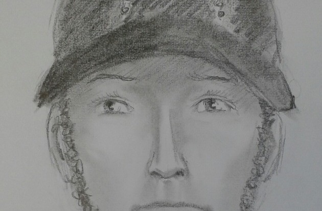 Ergänzend zur Zeichnung liegt folgende Täterbeschreibung vor: Der Täter soll 18 bis 20 Jahre alt und ca. 175 cm groß gewesen sein. Er war schlank, hatte ein jugendliches Erscheinungsbild und einen lockigen Unterkiefer-Kinn-Bart (ca. 2 cm breit). Er sprach akzentfreies Deutsch. Zur Tatzeit war er mit einer Schlabber-Jogginghose und einer dunklen Jacke bekleidet. Er trug ein dunkles Basecap mit Reflexstreifen (vorne im Halbkreis angeordnet) und einen Rucksack.