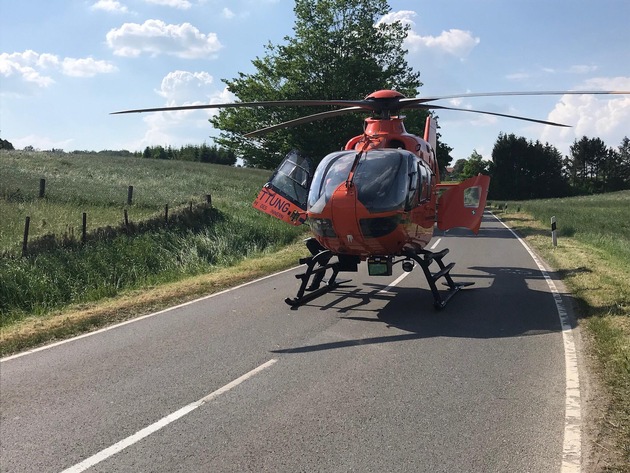 Die Kreisstraße musste während der Rettungsmaßnahmen, Landung des Hubschraubers und Fahrbahnreinigung gesperrt bleiben.