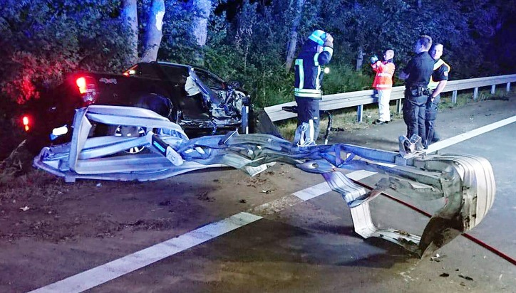 Die alarmierte Feuerwehr leuchtete die Fahrbahn aus und entfernte die deformierten Schutzplankenelemente, die in die Fahrbahn hineinragten.