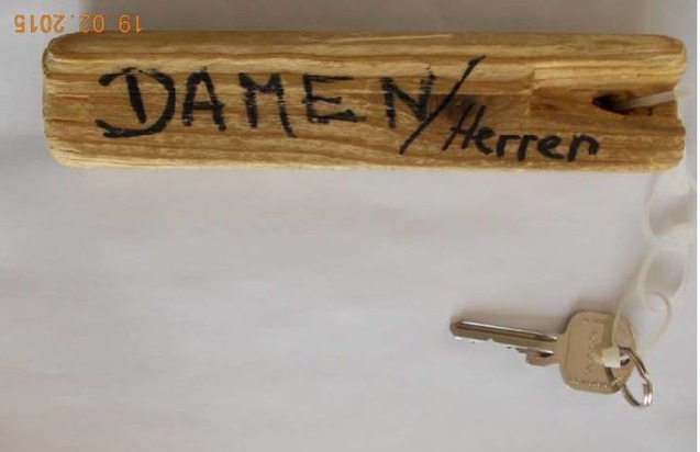 DRAKENBURG (mie) - In der Nacht zum vergangenen Donnerstag, 19.02.15, suchten bislang unbekannte Täter das Gelände der Classic-Tankstelle an der Bundesstraße 215/Verdener Landstraße auf. Die Unbekannten entwendeten nach Durchkeifen des Vorhängeschlosses aus einem Gitterkäfig neben dem Gebäude 20 Gasflaschen a 11 kg und eine Gasflasche von 5 kg. Der Schaden beläuft sich auf 2000 Euro. Von den Dieben wurde ein Schlüssel mit einem markanten Holzanhänger mit schwarzer Aufschrift "WC Damen Herren" zurückgelassen. Die Polizei Rohrsen hofft über den Schlüssel weiter zu kommen und fragt, wem dieser bekannt ist. Zeugenhinweise werden unter 05024/8653 entgegengenommen.