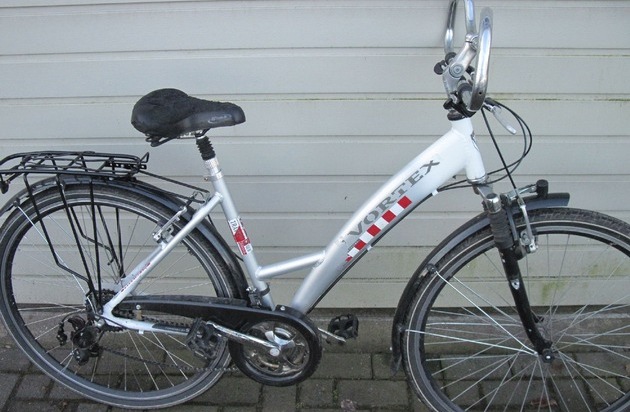 STOLZENAU (mie) - Am Sonntag, 22.02.15, wurde das Damensportrad in der Straße Am Gaswerk aufgefunden. Die Ermittler der Polizei Stolzenau konnten das silber-weiße Rad der Marke Vortex, Travel 500, 24 Gang Kettenschaltung, mit beschädigtem Sattel, bislang nicht zuordnen und suchen nach dem Eigentümer. Dieser oder Personen, die Aussagen zur Herkunft des Fahrrades machen können, werden gebeten, sich unter 05761/92060 zu melden.