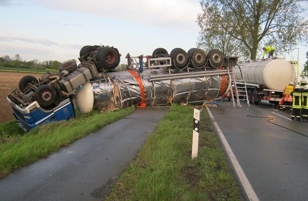 POL-STH: Sattelzug verunfallt und bleibt auf dem Dach liegen