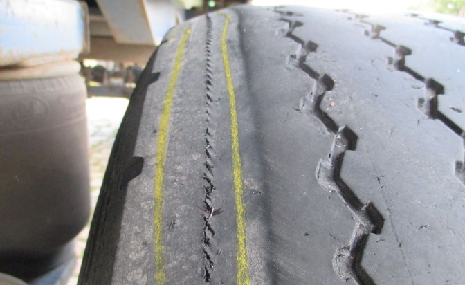 Bei einem landwirtschaftlichen Gespann aus dem Bereich Hildesheim, bestehend aus Unimog mit zwei Anhängern, wurden am Anhänger sechs von acht Reifen beanstandet, die so gravierende Mängel aufwiesen, dass eine Weiterfahrt untersagt wurde.