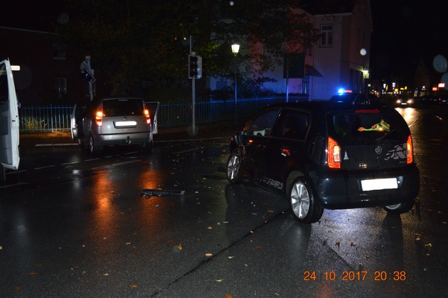 Beide Fahrzeuge stießen in der Kreuzungsmitte zusammen, wobei der Pkw der Helpserin den einfahrenden Pkw der Bückeburgerin rammte, der gegen den gegenüberliegenden Ampelmasten geschleudert wurde.