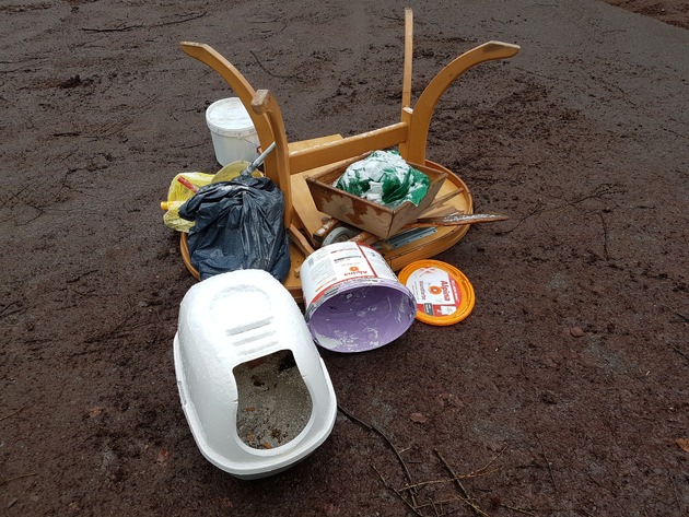 (bsm) Von Samstag, 20.01.2018 bis Sonntag, 21.01.2018, 11:30 Uhr, lagerte ein zur Zeit unbekannter Verursacher Sperrmüll auf einem Waldweg an der K 74 (Verlängerung der Stolzenegge zwischen Westendorf und Bernser Landwehr) ab. Es wurden u. a. ein Couchtisch, Farbeimer sowie ein Katzenklo auf dem Waldweg, welcher zur stillgelegten Bauschuttdeponie führt, entsorgt. Zeugen werden gebeten, sich mit der Polizei Rinteln unter 05751/9545-0 in Verbindung zu setzen.