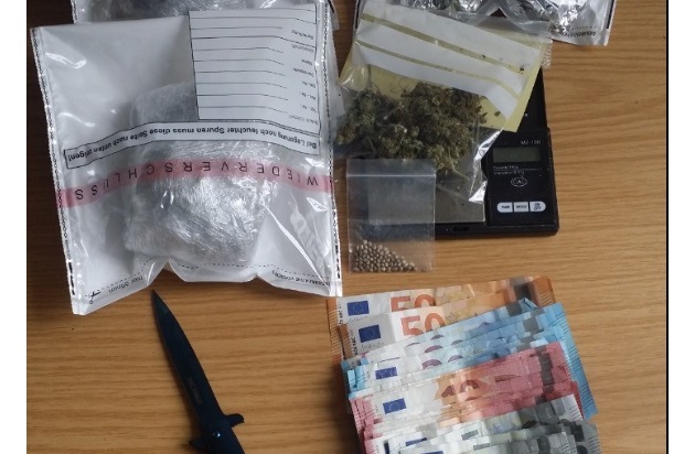 NIENBURG (jah) - Eine zivile Polizeistreife erkannte am gestrigen Tag im Nienburger Stadtgebiet einen 22jährigen Nienburger, gegen den ein Haftbefehl wegen Diebstahls vorlag. Prompt wurde der Mann zur Dienststelle nach Nienburg verbracht. Bei der Inaugenscheinnahme seiner mitgeführten Kleidung und eines Rucksackes stellten die Beamten eine nicht geringe Menge von Betäubungsmitteln (Cannabis), eine Feinwaage, Verpackungsmaterial, Bargeld im höheren dreistelligen Bereich sowie Cannabissamen fest. Das Cannabis war bereits in unterschiedliche Verpackungsgrößen portioniert. Zusätzlich führte der Nienburger ein griffbereites Einhandmesser mit sich. Der amtsbekannte Nienburger wurde nach Einleitung eines Strafverfahrens wegen Verstoßes gegen das Betäubungsmittelgesetz der zuständigen Justizvollzugsanstallt übergeben. Das durch ihn mitgeführte Einhandmesser wird dabei die Aussicht auf Strafmilderung im festgestellten Fall nicht verbessern.