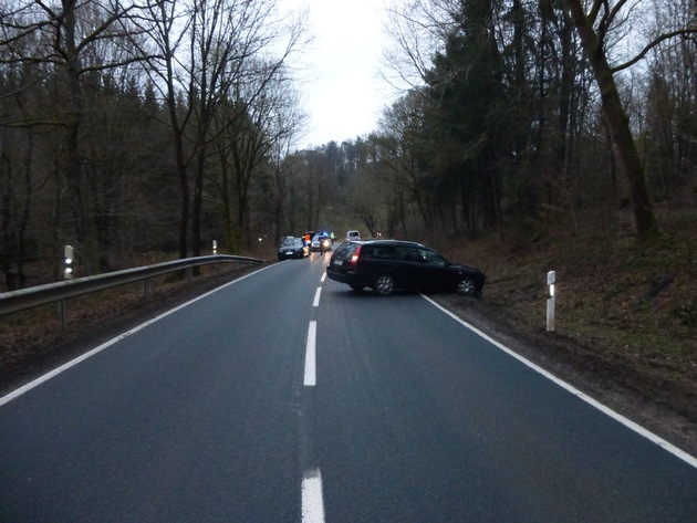 PÖHLDE(hol) Am Dienstag, dem 10.02.2015 um 16.20 Uhr, ereignete sich auf der Landestraße 530 zwischen Pöhlde und der Rhumequelle/ Rhumspringe ein Verkehrsunfall mit erheblichem Sachschaden. Ein 59-jähriger Einwohner aus Gieboldehausen befuhr mit seinem Pkw die Landesstraße in Fahrtrichtung Rhumspringe/Rhumequelle. Ausgangs einer Rechtskurve, in Höhe KM 7,0, geriet sein Fahrzeug plötzlich ins Schleudern und kollidierte mit dem entgegenkommenden Pkw eines 56-jährigen Einwohners aus Herzberg zusammen, der dadurch ins Schleudern kam. Dabei streifte bzw. kollidierte dieser mit dem ihm entgegenkommenden Pkw eines 26-jährigen Einwohners aus Duderstadt. Es entstand dabei ein Sachschaden von insges. ca. 17.500 Euro. Verletzt wurde niemand.